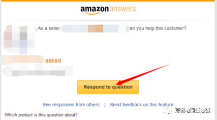 在哪里回复:问题提交之后,亚马逊会以邮件的形式通知卖家,可以登录邮箱找到此邮件进行回复。在邮箱找到对应的问题之后,点击Respond to question进行回复。如下图所示。