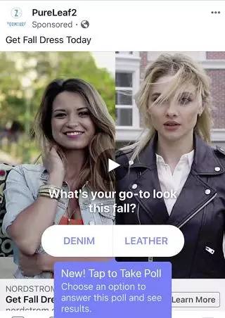 Facebook十月底测试了一个新功能,如果成功上线,广告主们将可以在广告视频中安插投票选项,和受众进行更直接更有效的互动!