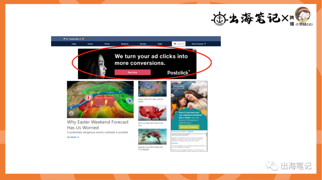 我们接下来讲第二种,也就是展示广告。展示广告具体在网站上面的版位,就是像我现在这样子展示出来那样,它是可以通过精准定位,并根据用户的一些行为记录来去给他们对配对。