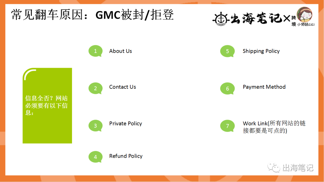 那我都说了,这个大家常见的原因,都是gmc被封,被拒登,被封这种就是常见的。那这个时候,我觉得大家可以先检查一下你的网站信息,是否齐全。
