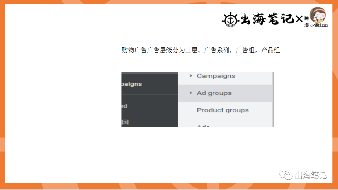 那广告的话他其实分的层级,跟Facebook有一点点像。就Campaigns,Ad groups 可能就是asset的部分,分成这几个部分。
