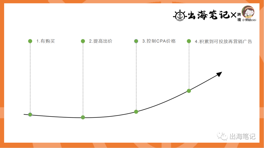 如果有购买了那我就加价,我扣量就尽量控制一下它的cpa,然后一直把数据积累起来带到再营销。