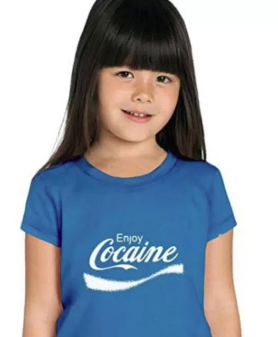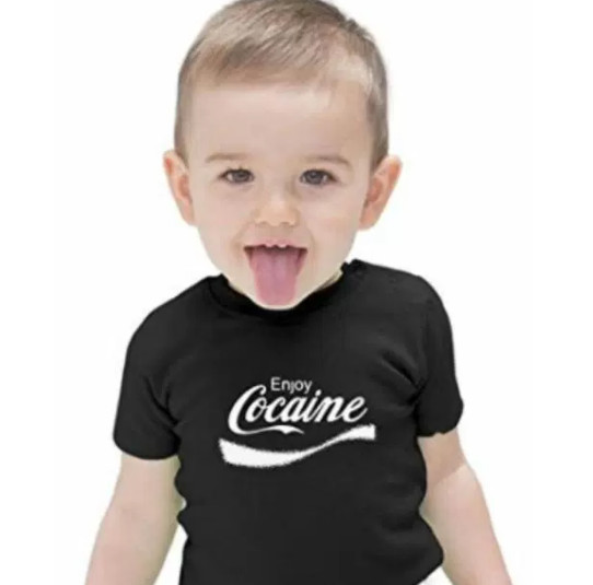 引发众怒的这款产品是一件印有“享受可卡因”口号的儿童T恤。