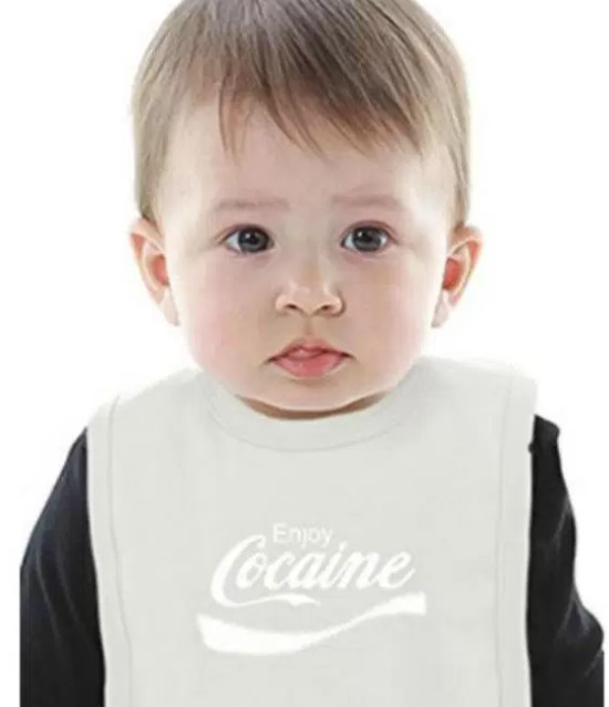 此外,该卖家出售的一款白色婴儿围兜也被列出,产品售价为8.99英镑,上面也印有“享受可卡因”的口号。