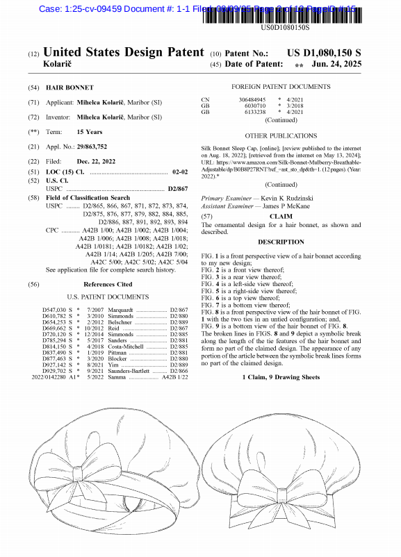 本案原告NANJING MIGRATORY BIRD APPAREL CO., LTD., DOING BUSINESS AS YANIBEST是中国的公司,此次维权的产品是一款发帽。原告的这款发帽的特点是有弹性的长带,宽大柔软,高弹性,亲肤,您可以包裹在头上,调整松紧度,然后系好将帽子固定在头上,可以保持一整夜,防止头发凌乱,很好地保护您的头发。