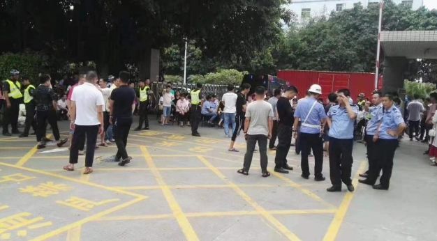 这张图片是在福永的工业园区,聚电智能的楼下,大家也能从图片中看出,门口聚集了好多讨债的供应商,还有维持秩序的警卫人员,据悉,这家公司拖欠供应商的货款高达2000多万元。
