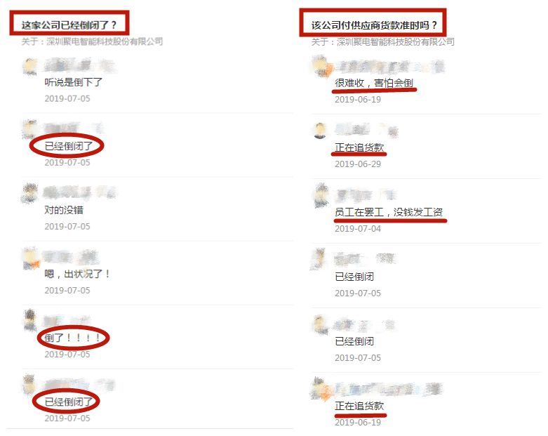 大家可以看到,有人在6月19日就表达了自己害怕收不到货款的心情,还有人称正在追货款,到7月4日有网友回复说该公司已经发不出工资了,员工们也都罢工了。