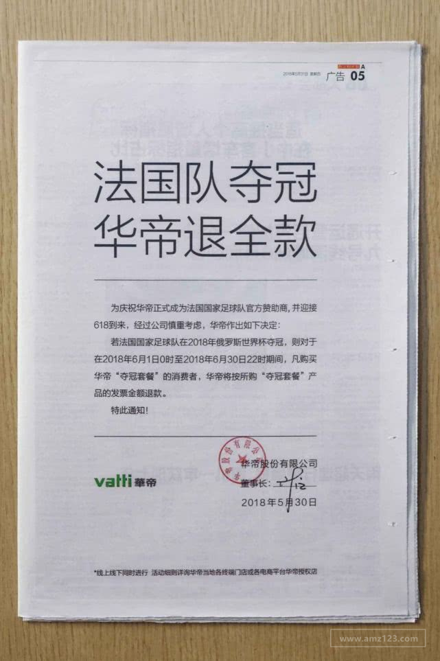 除了官方赞助,品牌本身也能通过一些有意思的限定活动和产品来“蹭一蹭”世界杯的流量。在2018年俄罗斯世界杯上,名气并不大的厨电品牌华帝,凭借“法国队夺冠,华帝退全款”活动,将营销推向了高潮。