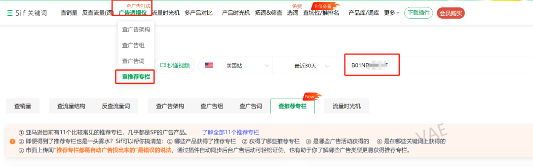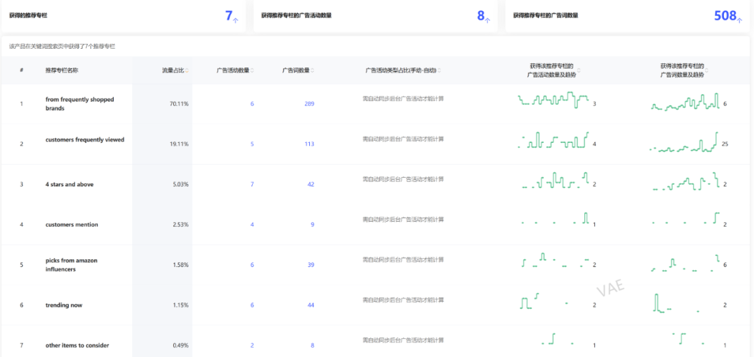 这里有两个视角可以看到推荐流量专栏的来源,一个是广告活动维度的视角,可以看下这个活动下能跑到推荐流量专栏位置有哪些。另一个是以词维度看推荐流量专栏的位置。
