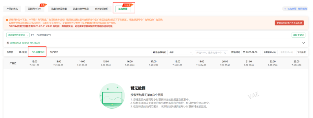小时级排名跟进产品的推荐流量专栏坑位(PS:无法放具体产品的数据,大家凑合来看)