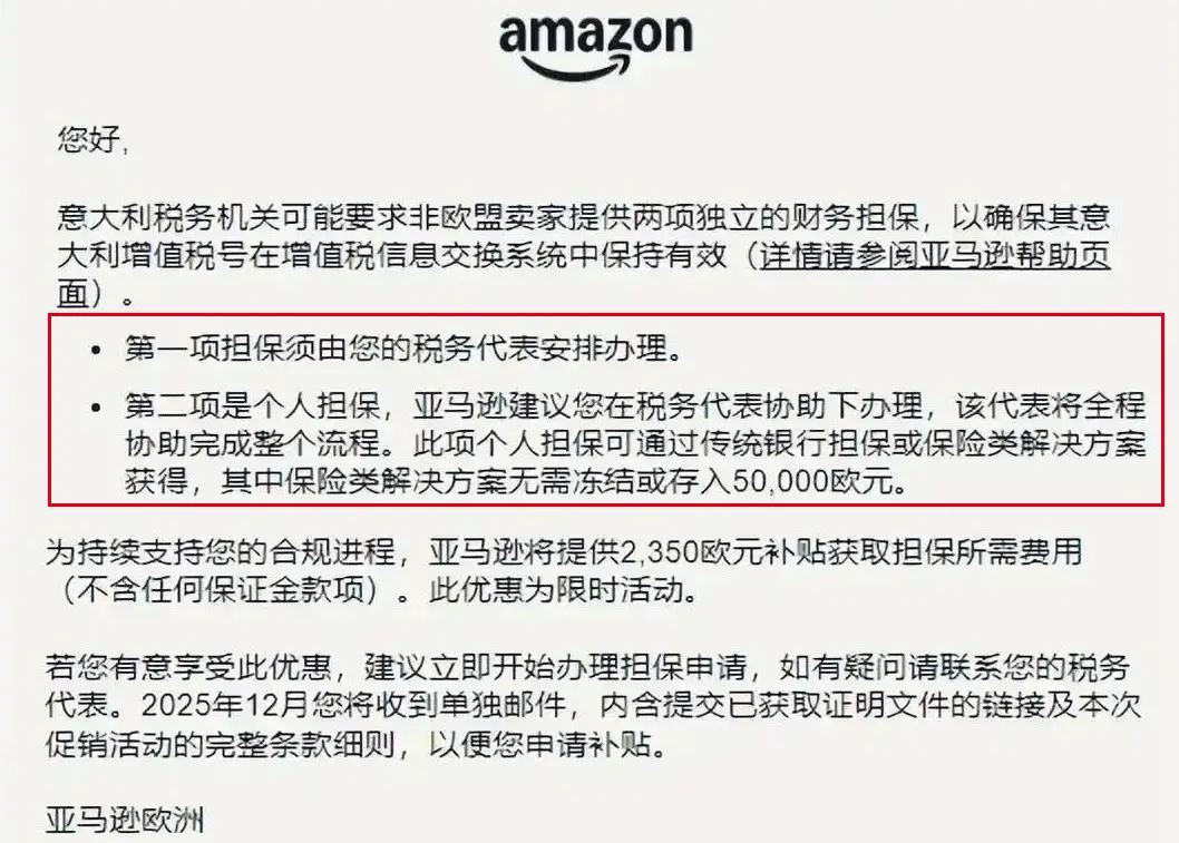 据直击跨境了解到此次洲站卖家被意大利税务局“精准打击”事件源于意大利税局半年前新规:非欧盟卖家需缴纳5万欧元保证金维持税号,导致未合规中小卖家税号被批量注销。