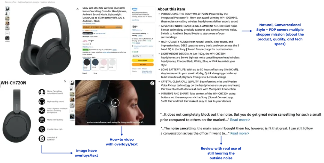鼓励评论中提及真实使用场景;定期更新FAQ,反映高频真实提问;每月复盘Listing,持续调整最新的意图描述。比如“Great noise cancelling for the price - I can still follow conversations if I want to”,或者“Perfect for staying aware in the office while blocking distractions.”