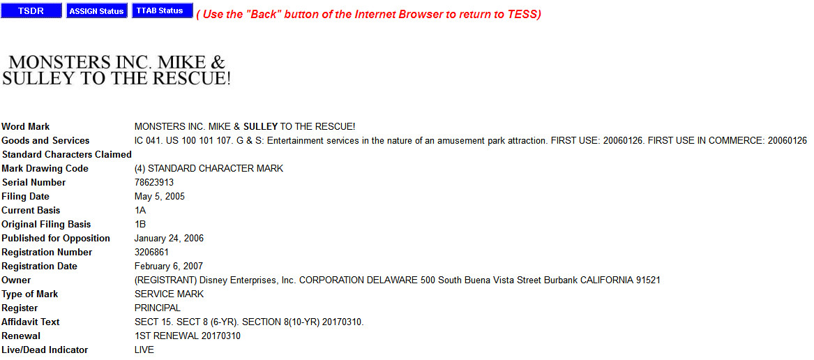 不过,这样的产品无疑是有版权的。早在多年前,迪士尼就注册了相关商标,目前当然也是有效的,其所在的41大类正是“教育娱乐”类: