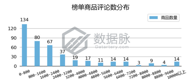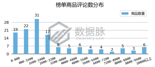 在上周登榜 Pet Supplies 品类 Movers & Shakers 榜单的商品中, 单个商品拥有的最大评论数为19406.00条,最小评论数为7.00条,平均评论数2608.80条,评论平均星级4.30星。 其中,有31.68%的上榜商品评论数在800条以下,另有18.91%的商品评论数在800条至1600条之间,同时有15.84%的商品评论数在1000条至1500条之间。此外骆探长(shujumai.com)发现,上周共有14款商品评论数评论数超过10000条,占总上榜商品数的3.31%。相较于上期分析,该周进榜商品的平均评论数继续略有提升,老牌商品的榜单冲击力依旧强劲,新品冲榜压力仍然较大。
