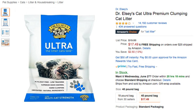可以看到,在上周Pet Supplies品类的Best Seller榜单中, 进入榜单前五的几款商品皆为具备一定市场销量规模的榜单常客——其中,品牌Dr. Elsey's的猫砂产品继续在一周中连续7天蝉联榜首,以绝对的优势位居商品综合排名首位;