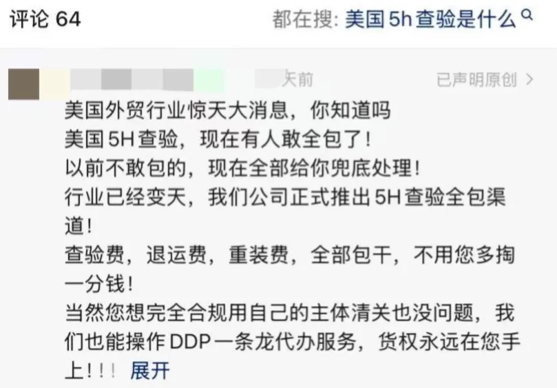 “美国外贸行业惊天大消息,你知道吗美国5H查验,现在有人敢全包了!