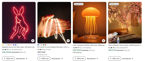 定制姓氏门牌、手工香薰、LED 小夜灯、节日装饰,贴合欧美家居审美,客单价 30-60 美金,国内货源丰富,溢价空间大;