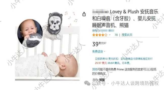 (截至2024年4月21日)在亚马逊平台的评分为4.0颗星,拥有78条来自买家的评论。在【婴儿睡眠安抚奶嘴】商品排行榜中排名第234名。