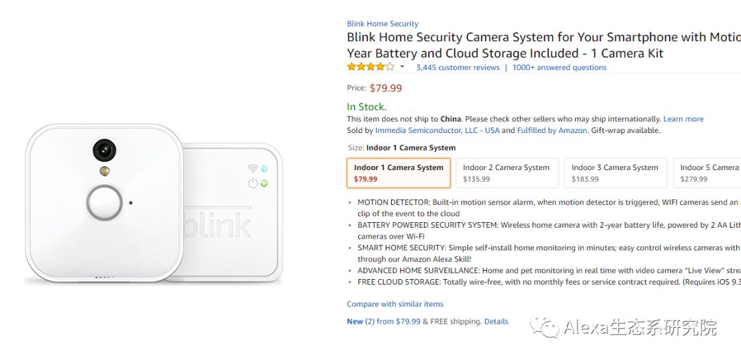 带网关的Blink的摄像头(网关+单个摄像头)直接售价79.99美金。这个价格搞的Arlo都有点措手不及了。亚马逊发起飚来,连自己都砍。相当任性。