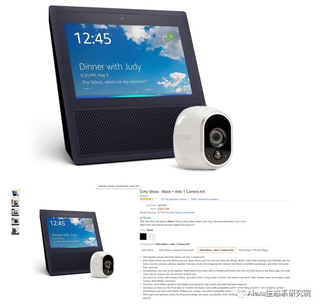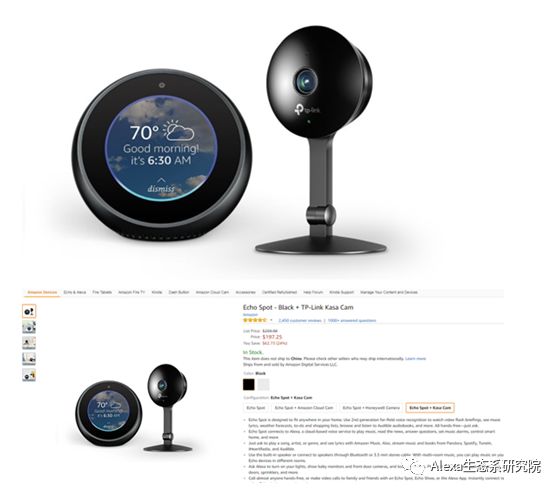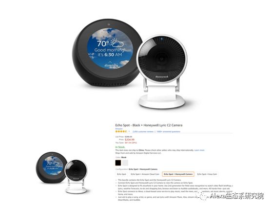 2、配套着视频类的产品,亚马逊有Alexa生态里专属的Echo Show和Echo Spot产品结合。除了视频通话,语音看视频购物之外,可以语音随意调取摄像头的视频也是结合的一大卖点。