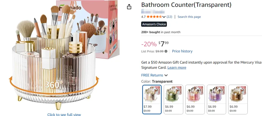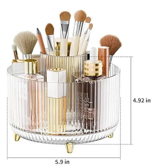 核心成交词:Rotating Makeup Brush Holder/Spinning Vanity Organizer(精准锁定“旋转”功能需求)。