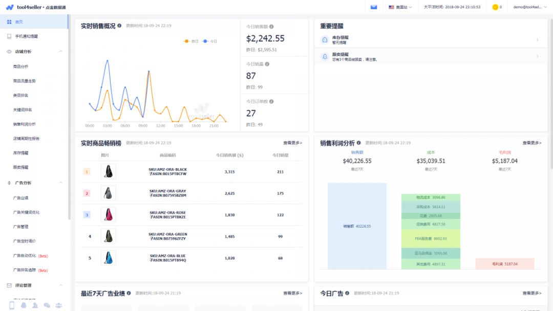 相比之下tool4seller的功能就强大的多,不仅在数据分析上支持多数据的汇总分析、交叉分析,而且具备像销售利润分析、广告管理、自动索评、手机APP等海卖助手不具备且广受卖家欢迎的实用功能,是一站式的亚马逊店铺数据分析工具!