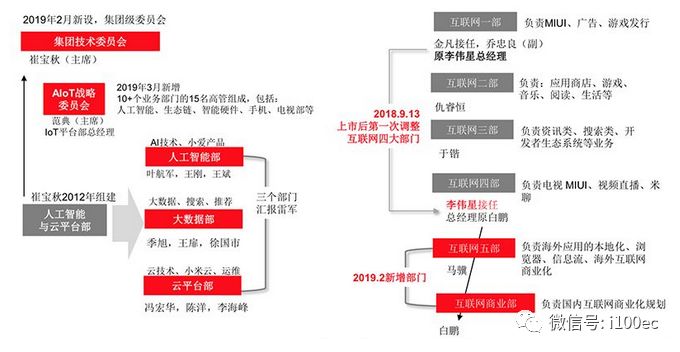 在小米2018年上市前后至今,分别进行了一次和五次组织架构大调整。