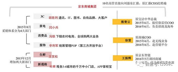 在此期间,京东商城中高层岗位重点任用内部人才,事业部构造分品类成立了6大BU,由刘强东统领;3名核心高管调至商城集团,分别牵头无线化、后台、运营支持三大任务;中层干部中管培生中20多人晋升到总监以上级别。