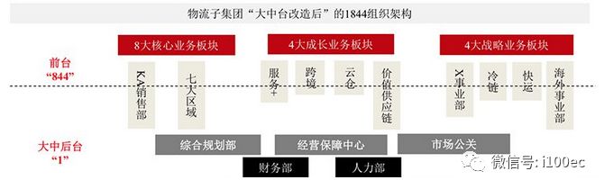 此外,京东物流集团也进行了积木化改造,打散成“前中后台”,形成1844的组织架构。1是指一个大中后台,是实施营销、进行人力财务规划的主体。