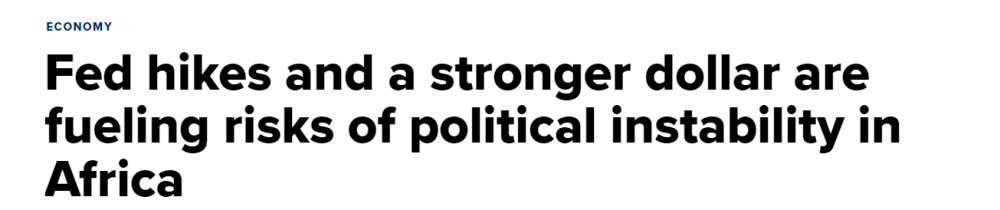 日前,美国CNBC发文表示,美联储加息和美元走强加剧了非洲政治不稳定的风险。