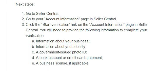 亚马逊需要验证的信息则指卖家姓名、身份证文件信息、办公地址、银行账户信息、有效的工作电子邮件、有效工作电话号码和纳税人识别号,且要求这些信息必须是卖家的企业名称或是卖家合法授权个人代表的。