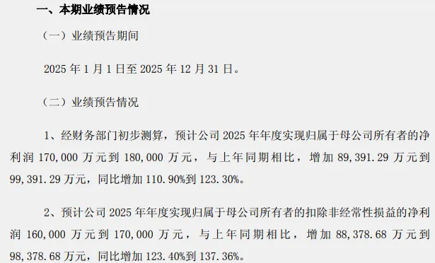 具体来看,科沃斯2025年全年扣非归母净利润16-17亿元,同比增幅高达123.40%-137.36%,是其上市以来第三高年度净利润增幅;