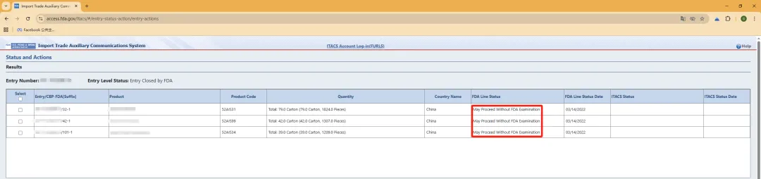 亦可使用 ITACS 系统查询 FDA 申报 Entry 的状态,