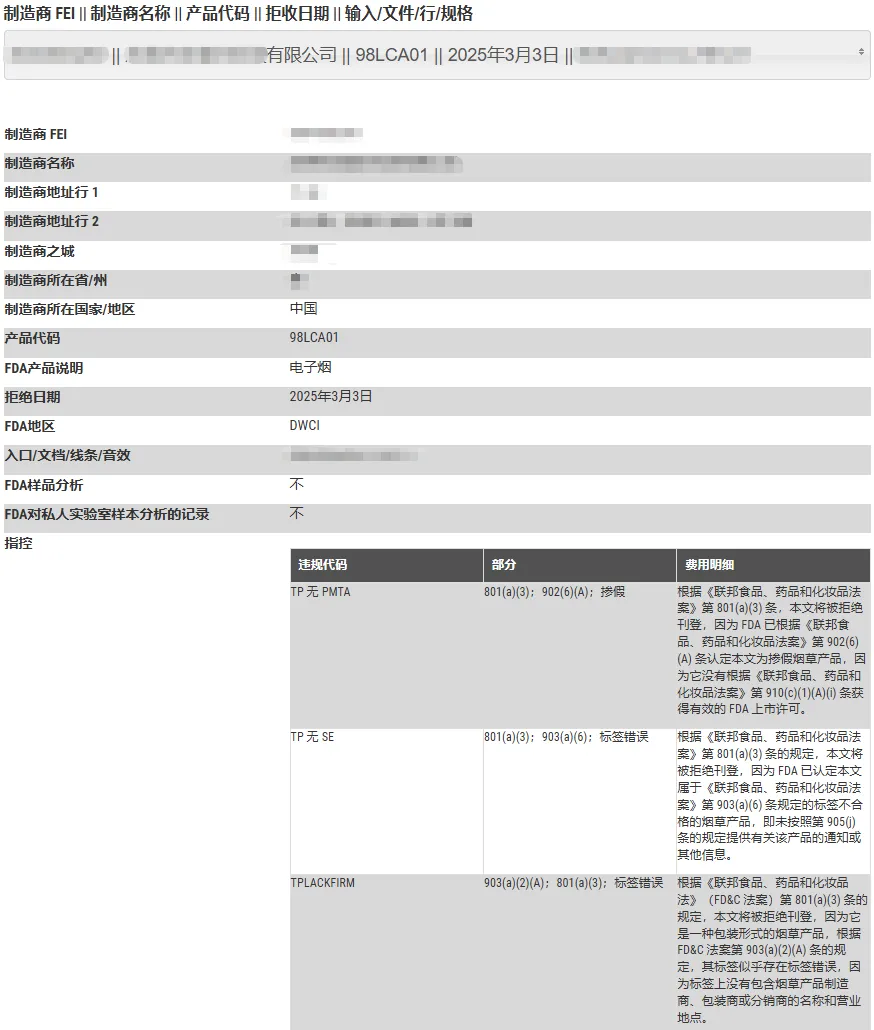 以上列表并非 FDA 监管产品被拒绝入境的全部原因。如需了解具体被拒产品的信息,可以查看 FDA 进口拒绝报告 IRR,