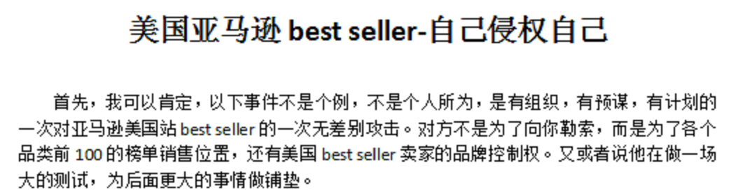 据说批量亚马逊美国站销量Top100卖家被投诉侵权了,面临的结果就是:产品被下架,销售权被转移,损失可以说不可估量!