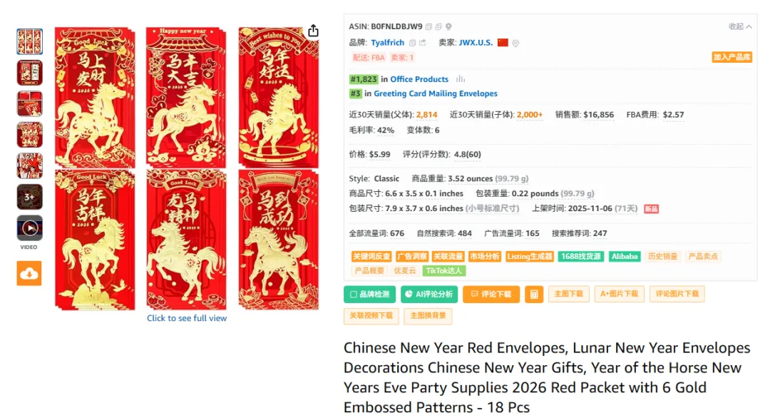 为了把这事说透,我们直接拆解这个具体的ASIN:B0FNLDBJW9(Chinese New Year Red Envelopes)。