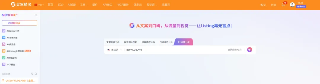这时候,我们需要引入一个客观的“第三只眼”。我习惯用卖家精灵(SellerSprite)的AI-Listing全景分析工具。这不仅是为了省力,更是为了剥离情绪,还原事实。