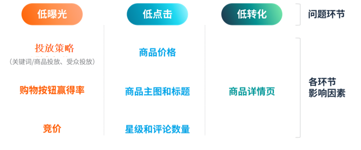 转化低意味着点击广告的用户很少最终完成购买或其他期望的行动。通常是商品详情页的问题。