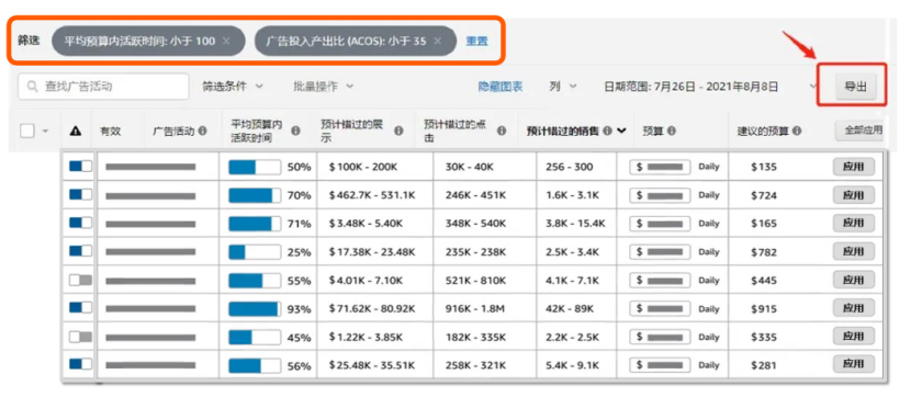 我们可以通过亚马逊广告平台的“预算页面(测试版)”来查看全部影响要素数据,并针对自己的实际需求,调整各个要素数据,达到控制整体预算的目的。