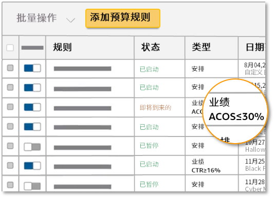 现在我们能够通过预算规则避免商品推广广告活动超出预算,通过基于时间表的规则和基于效果的规则针对广告活动表现适时地为广告活动设定预算规则以利在关键时刻提高预算。