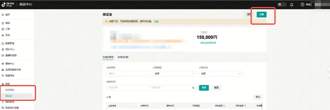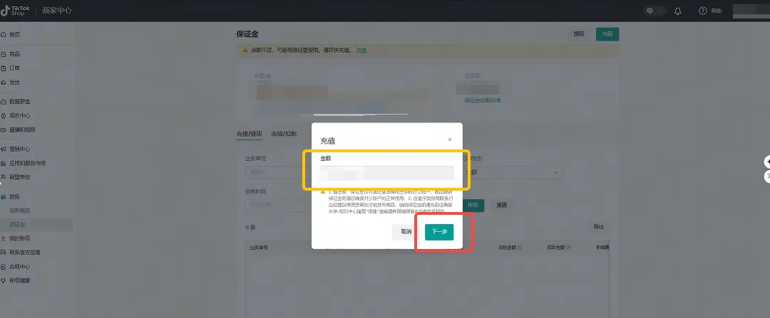 1、首先用电脑登录TikTok商家后台,点击资产,点击保证金,进入保证金页面。