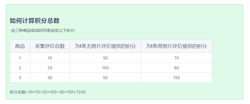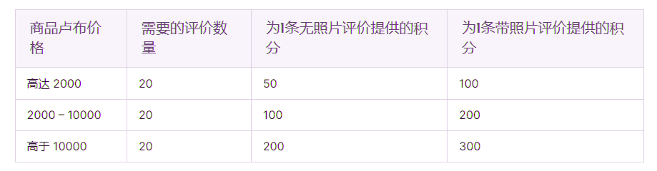 · 1条评价对应的积分——卖家为发表无照片和带照片评价的买家设置积分值。(买家更倾向于信任附带照片的评价,评价积分的最低值为50分)