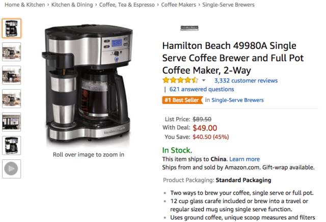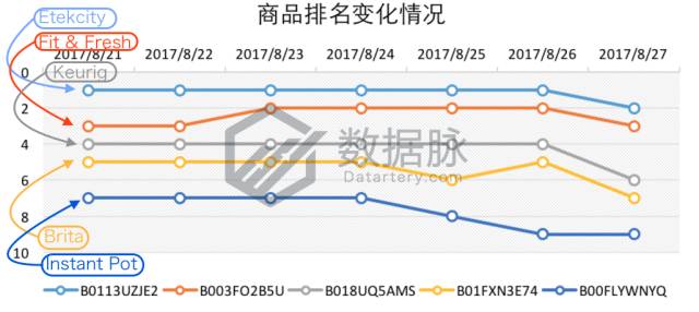 高达758.0%的单日最大涨幅,品牌Hamilton Beach的咖啡机以25.75的平均排名位居第四。