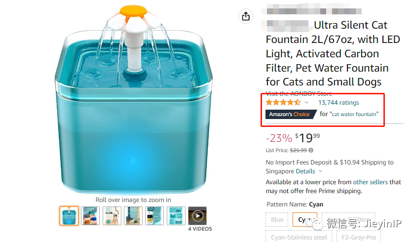 今天分享的这款宠物喷泉,它是亚马逊美国站的#1 Best Seller in Cat Fountains,售价19.99美金,留评高达13744.