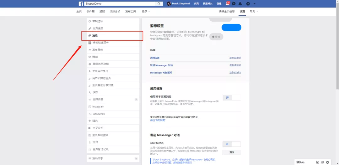 独立站基础干货:Messenger在线聊天工具配置