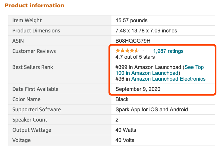 Spark在亚马逊上架了半年就有了近2000个Review,比细分小类目中的Best Seller还要多。