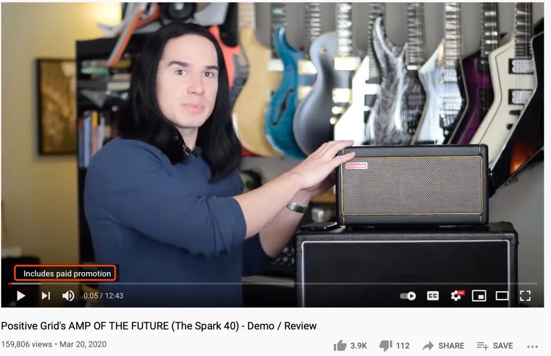 像Guitar MAX上这种在Youtube上具有10万多粉丝多专业类账号发布的带“paid promotion”的视频,起到了很好的“专业导购”作用,这让Spark获得了很多外部精准流量和专业背书。
