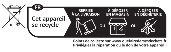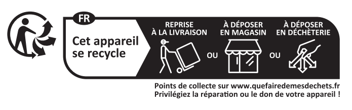 ③处根据您的产品组合,表明产品“可回收”,比如此产品可回收为:Cet apparell se recycle;如果单个产品带附件,则对应说明产品和附件可回收:Cet apparell et ses accessoires se recycle;