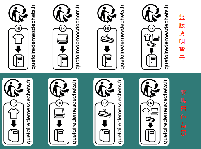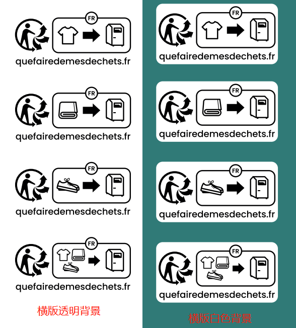 以下是法国纺织品最新标识,该标识从2022年1月1日起开始生效使用,过渡期为1年时间。
