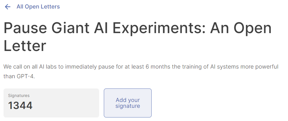 不过就在刚刚,网上爆出了一封千位大佬的联名信,呼吁大家暂停比GPT-4更强的研发。